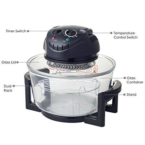 - Feature : Convection cooking with halogen heating cooks food fast and delicious / Low fat cooking: allows the user to cook without excess fat or oil / Retains nutrients and flavour of food and cooks up to 3 times faster than a conventional / Package Includes Standard Stainless Steel Accessories: Tong, Dual Rack, Lid Holder. / ETL approved, 12 month manufacturers guarantee is also included.