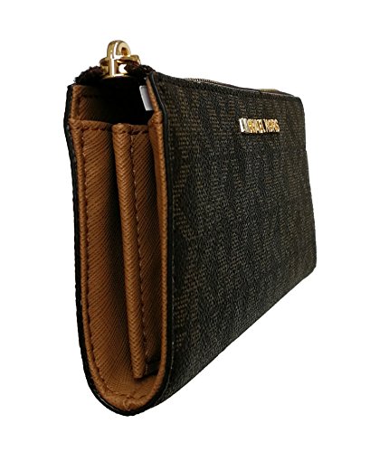 -. Title : Bedford Large Three Quarter Zip Around Pebbled Leather Wallet (Brown/Acorn)