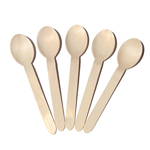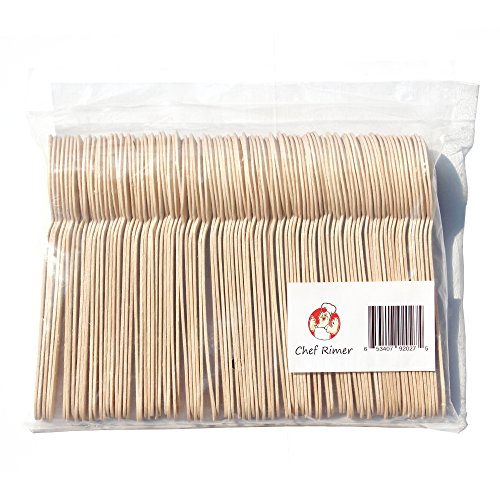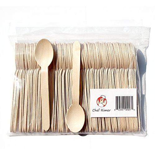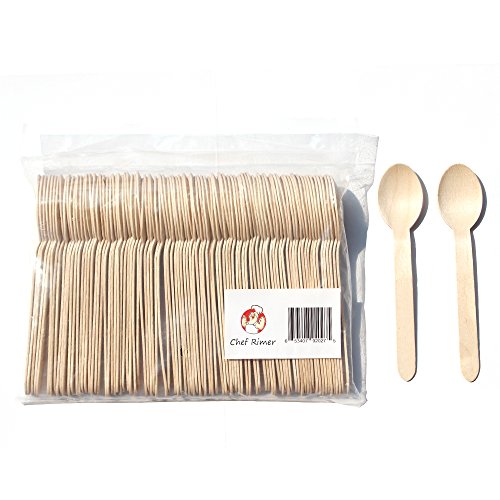 Chef Rimer Disposable Wooden Spoons 6" Length (Pack of 100) Biodegradable Compostable Eco Friendly Green Utensils Wood Flatware Dinnerware Kit For Party, Picnic Camping Kids Lunch Wedding Supplies Set