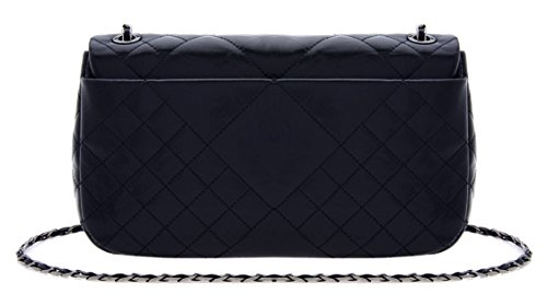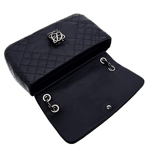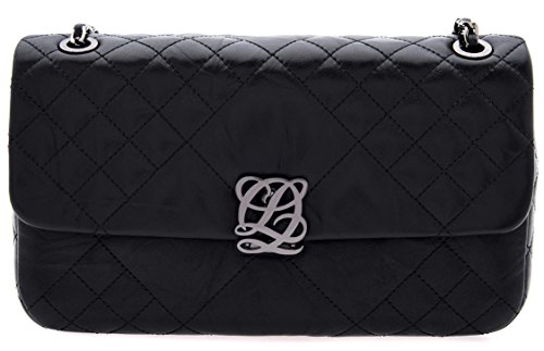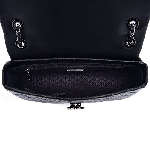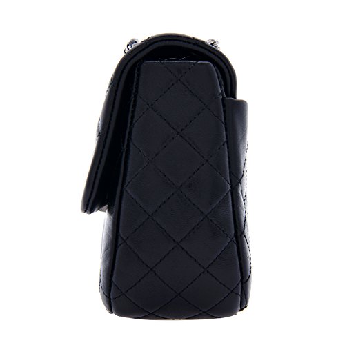 LQ LOUIS QUATORZE Women's Cow Leather Quilted Style Shoulder Handbag Black HJ4CB16BL