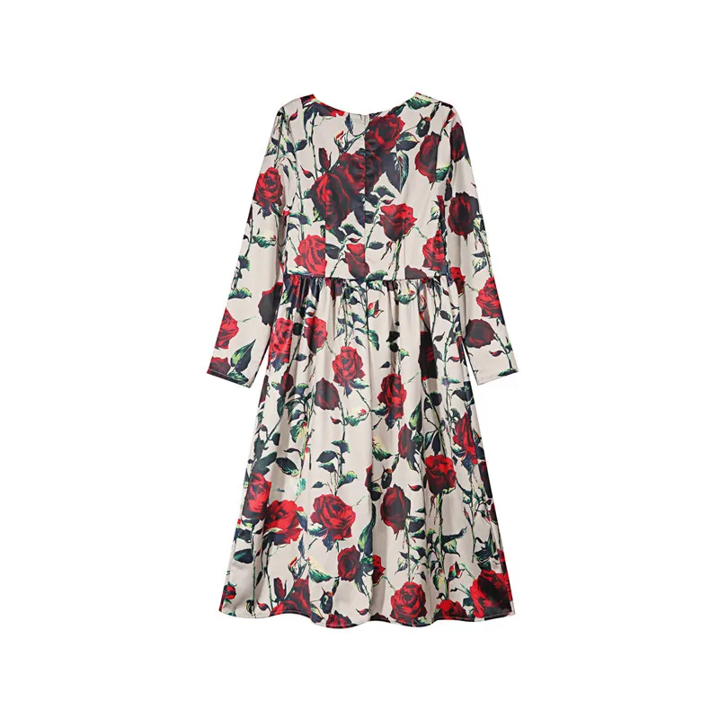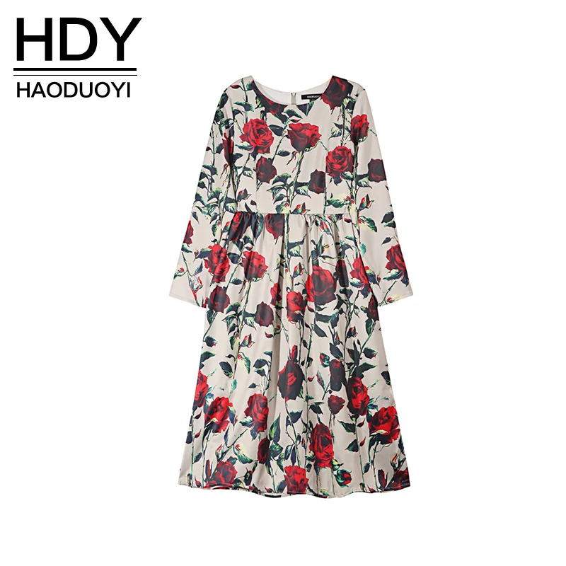HDY Haoduoyi Floral Printed Fashion Midi Dress Women Long Sleeve Crew Neck Female A-line Dress Slim Loose Pleated Casual Dress | |||||||||||||||||||||||||||||||||||||||