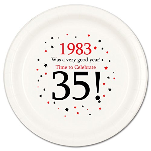 Product Description8/Pkg - 1983 - 35th Birthday Dessert Plate - 1983....was a very good year! Measures 7 inches. Made of heavy-duty paper.0
