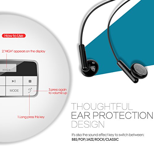 【 Ear-protection Design 】sudden exposure to high level music may result in hearing loss. The cd player is designed with a default volume when turned on to offer ear protection. Long press the ear button for 3 seconds, the LCD display will show "HIGH", then release the button and press again to increase the volume