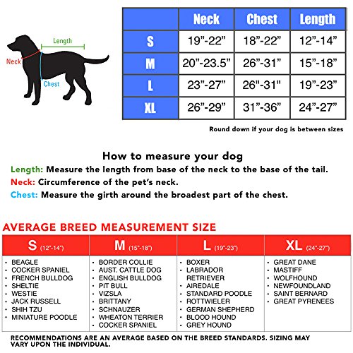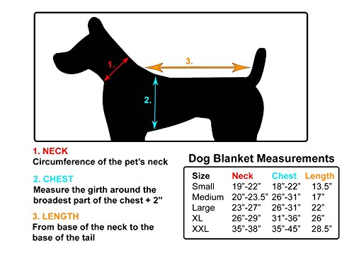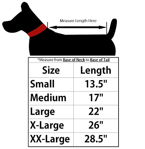 Product Description Keep your canine companion warm and dry.? Available in sizes and colors to accommodate most dogs. Sizes are measured from base of the neck to base of the tail. 0