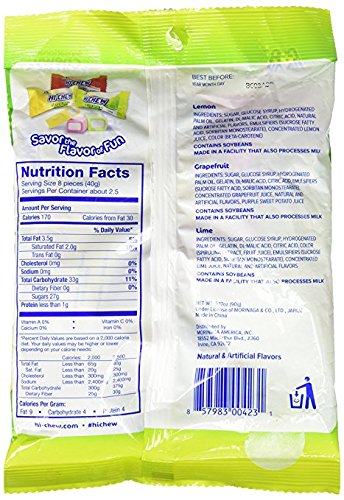 -. Feature : Each pack contains 3 flavors - lemon, grapefruit and lime / 17 individually wrapped pieces in one bag / Hi-Chew Sours