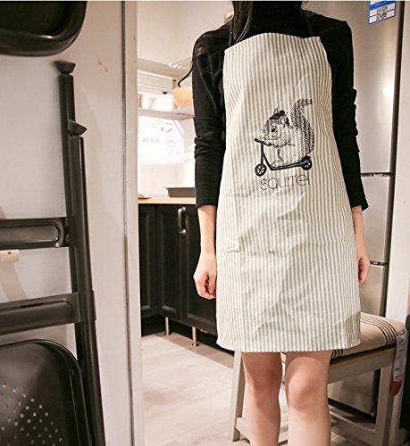 Luchuan Simple Fashion Oil Proof Kitchen Adult Sleeveless Household Smock Cotton Apron (Printing little squirrel)
