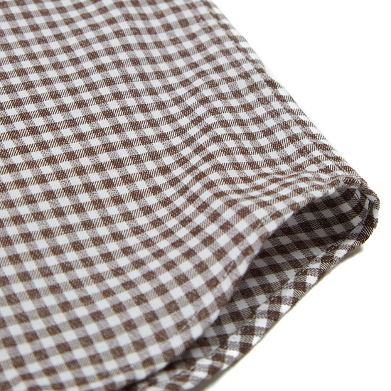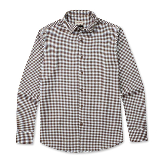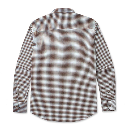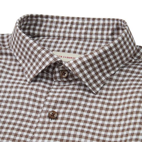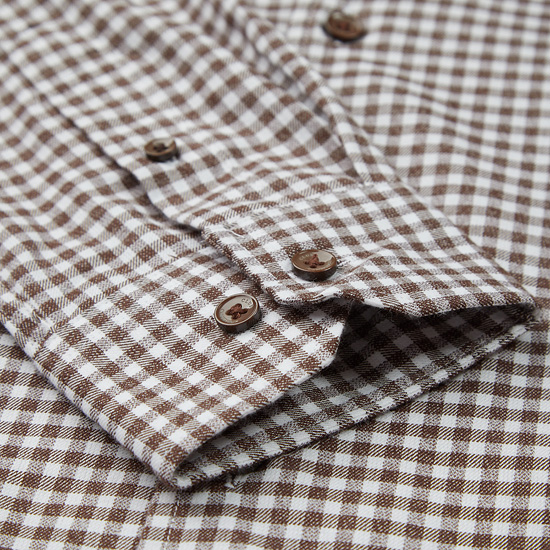 - 전면 깅엄 체크 패턴을 적용한 남성 셔츠.