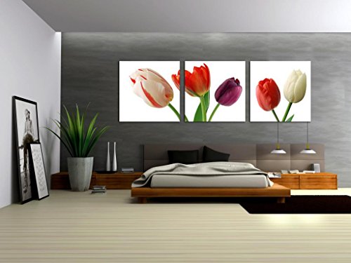Espritte Art-Multi Tulips, Picture Painting on Canvas Print without Framed, Modern Home Decorations Wall Art set of 3 Each is 50*50cm #D01-160
