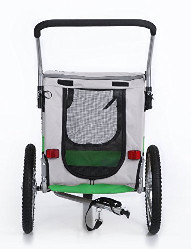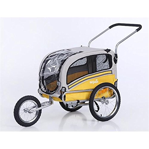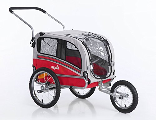 -. Binding : Misc. -. Brand : Sepnine -. Color : Multi-colored -. Feature : Dual entry (front and back) design for easy loading of your pet / Medium size suitable for pets up to 66-pound / Safety leash avoiding pet jumping out / Trailer will fold down flat for easy storage when not in use / Front and rear access doors with mesh windows for optimal airflow and visibility -. Label : Oskar-bebehut -. Manufacturer : Oskar-bebehut -. PackageQuantity : 1 -. ProductGroup : Pet Products -. ProductTypeName : PET_SUPPLIES -. Publisher : Oskar-bebehut -. Studio : Oskar-bebehut -. Title : Sepnine 2 in1 pet dog bike trailer bicycle trailer and stroller jogger 20303