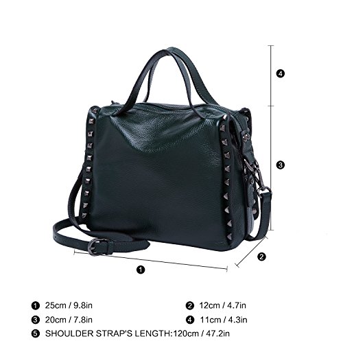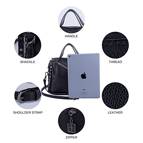 -. Feature : Material:High quality vintage soft Top Grain Leather with durable gold antioxygenic hardware,waterproof and wear resistant.Same stitching matches the same color of purse.Smooth and durable polyester lining,Zipper closure for your security. Luxury,Generous and Elegant handbag ,Shoulder bag,Messenger bag,Top Handle bag. / Features:This leather designer handbags contains a main section compartment, 1 interior slot pocket,1 interior zipper pocket,1 cell phone pocket,1 credentials pocket and 1 back pocket for your cell phone or wallet.Zipper closure with metal logo pull on both sides,delicate zip closure is designed for the safety of your properties. / Dimensions:Top handle,zipper closure.Large capacity:(L)9.8" * (H) 7.8" * (W) 4.7"inch Light Weight:1.36 pounds.This handbags comfortably can not holds a 10 inch tablet.iPad, iPhone6s Plus, wallet,ID card,Key pocket,cosmetic, and other daily things, can be easily contained.Perfect to use as daily handbags for working, shopping, or dating,perfect to let your hands free. / Handicraft Arts:Famous brand, Original design, handmade by professional artisans.European and American style,Elegant, Vintage and Fashion.Fit for traveling, working, dating, shopping.No matter for girl, women or office ladies, it is a good choice! / Multiple Uses:Double handle(about 4.3 inch,Length is enough to put on shoulder) with a long removable and adjustable shoulder strap(about 42 inch).3 switching modes: Hand carry, Shoulder and Cross Body.You can use the comfortable and perfect mode in any occasion.
