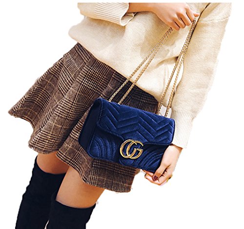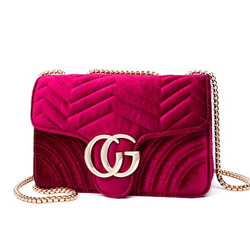 (WXL)/Accessories/Handbags/DIRECT FROM USA/Women Velvet Chain Satchel Wavy Pattern Bag