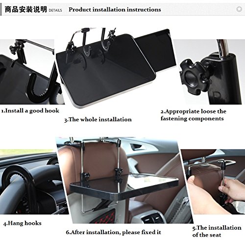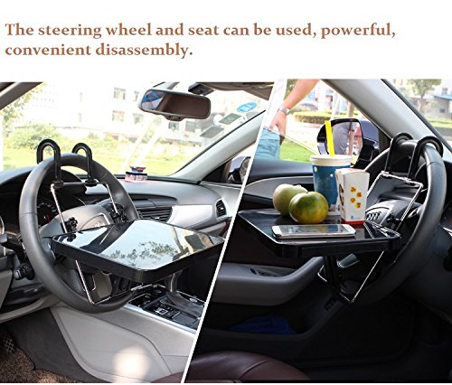 -. Feature : Design perfect, powerful, easy to install, easy removal, high-quality materials. / Portable fold up car multi tray.Multi-functional, can be mounted to steering wheel, assistant seat and seat back. / This product can place to the steering wheel or back of the car seat in seconds without hassle. Work as a writing table or as a platform for your laptop computer. / Reverse side is a food tray with drink holder. Slim design that can fit into the back of the car seat when not in use. / The lightweight construction makes it easy to carry or store in the back seat pocket while not in use.