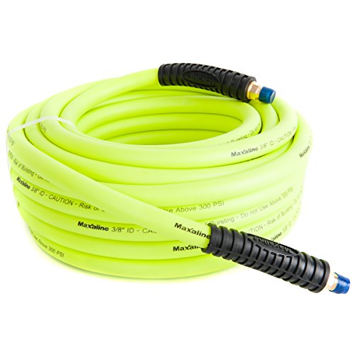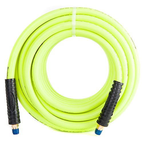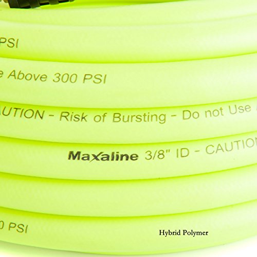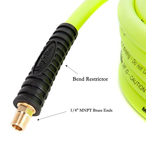 Non-Kinking Hybrid Polymer Air Hose 3/8" x 50' 300PSI With 1/4" MNPT Brass Ends and Bend Restrictor Green