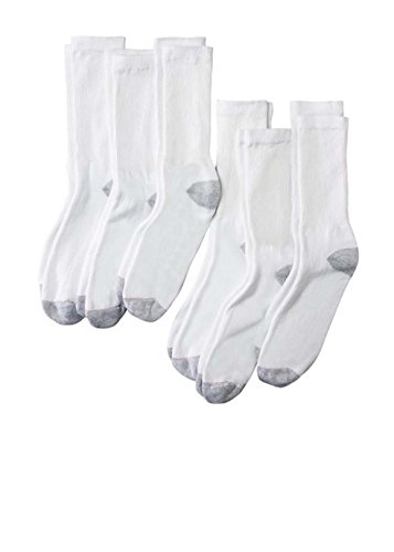 -. Feature : Six pack crew length socks / Gray heel and toe,Durable heel and toe / Comfortable toe seam,Soft cushioned foot / Machine washable / Shoe Sizes 3-9