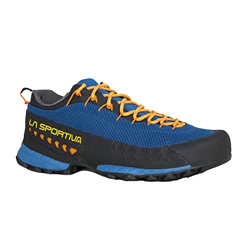 Studio : La Sportiva Publisher : La Sportiva Binding : Apparel Product Description FEATURES of the La Sportiva Men's TX3 Shoe Rubber sticky vibram megagrip traverse outsole with enhanced stability area and trail bite heel braking platform Low-profile lacing harness for a snug precise fit STB control system delivers torsional rigidity and support without encumbering underfoot cushion Wide forefoot fit for excellent all day comfort and stability 0