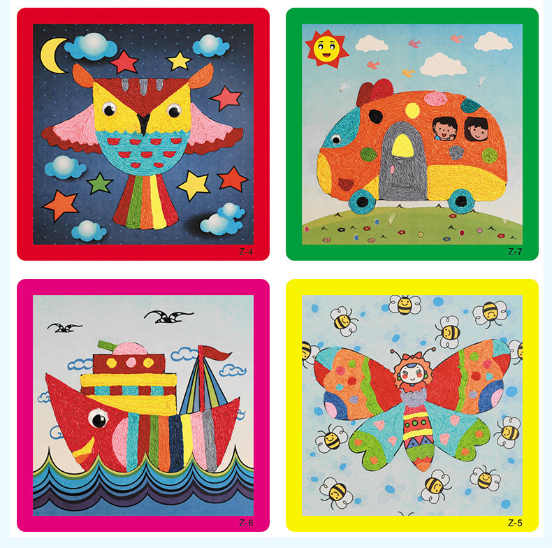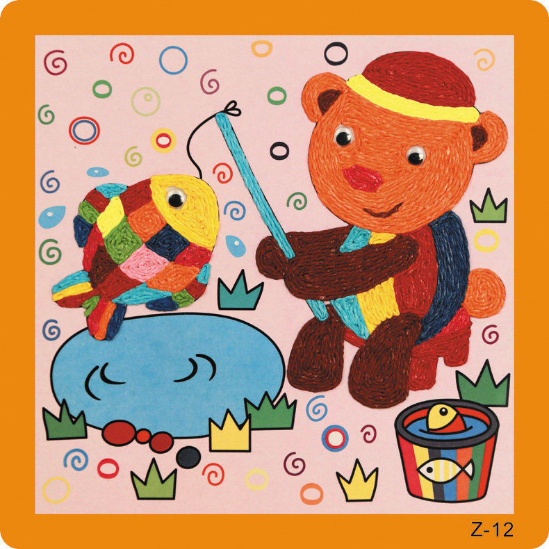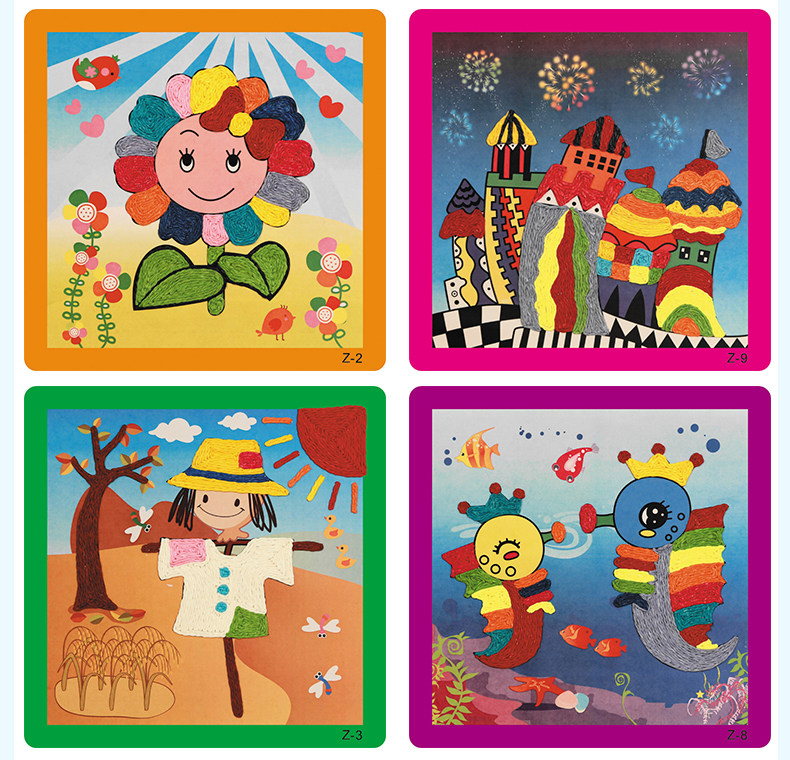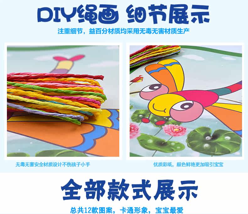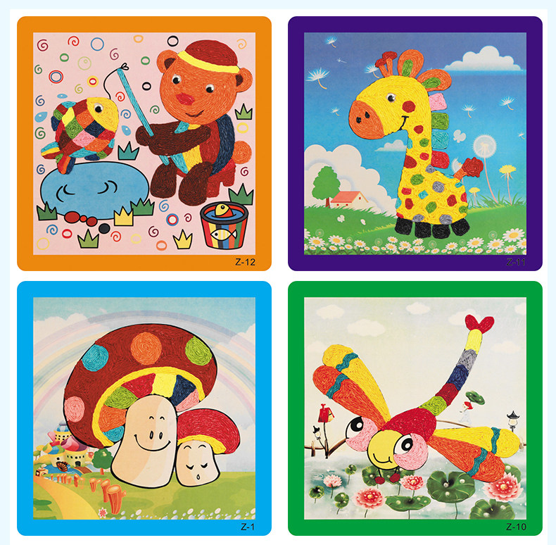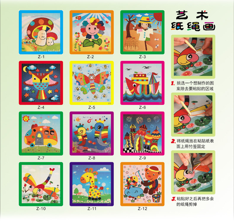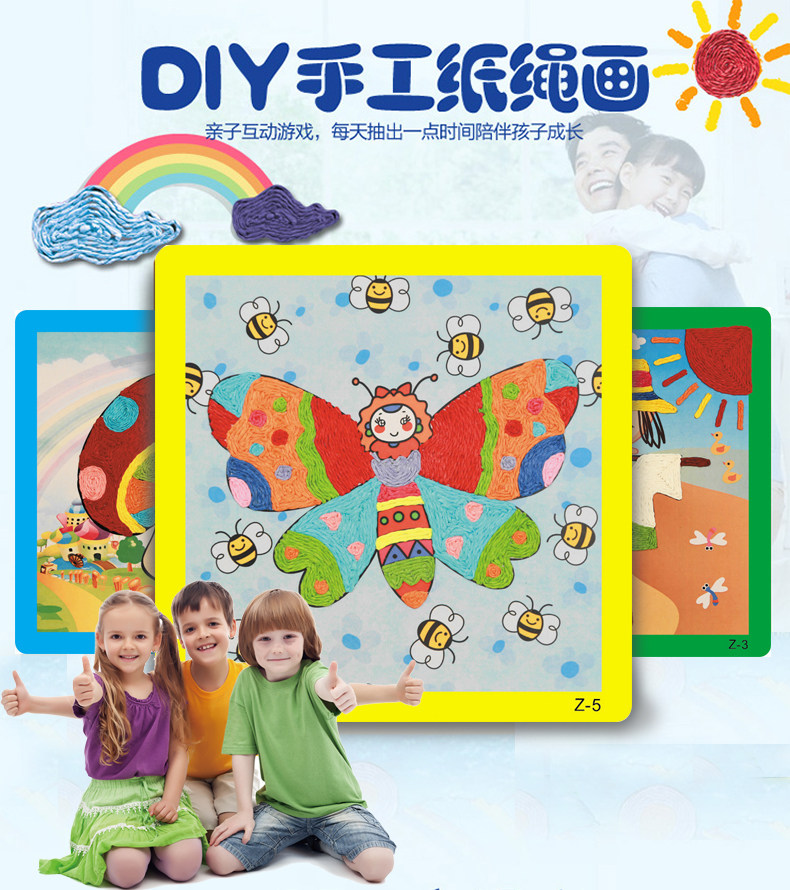 新款儿童纸绳画幼儿园diy手工材料彩色纸绳 儿童玩具装饰 12个款   规格:235mm*235mm