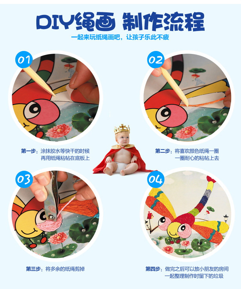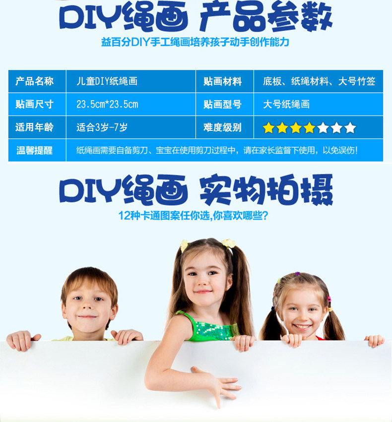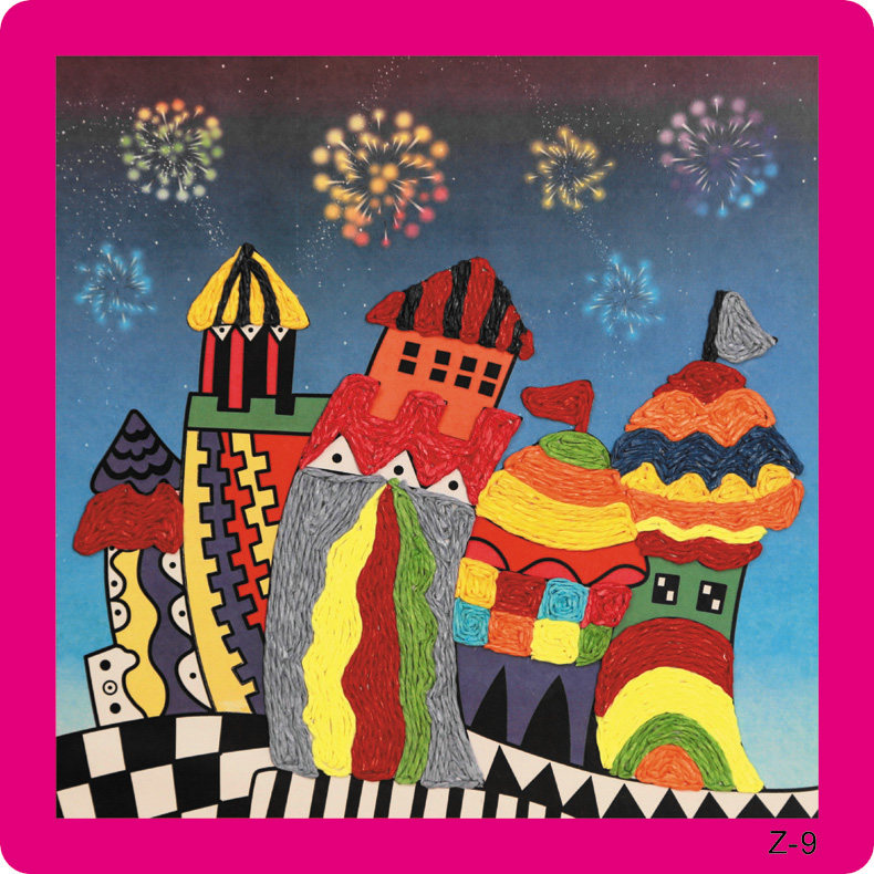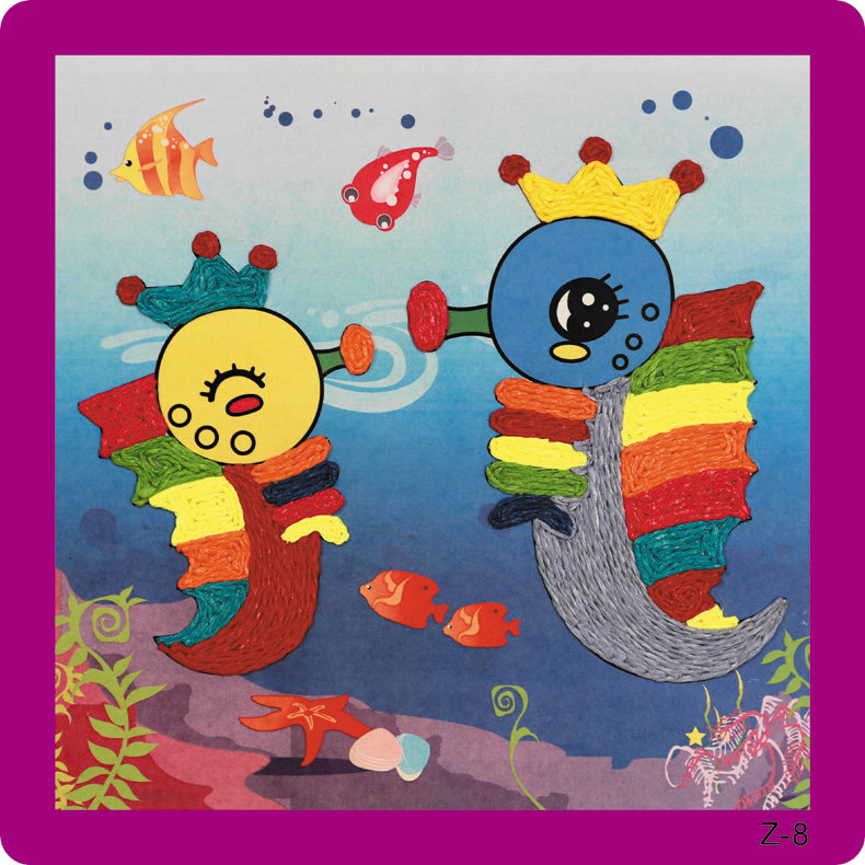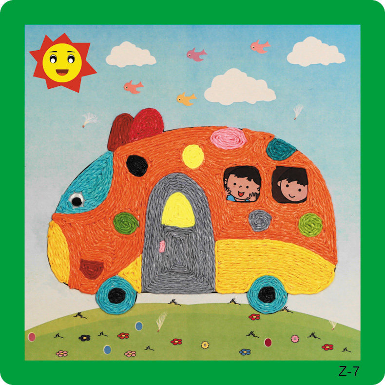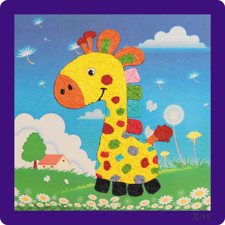 新款儿童纸绳画幼儿园diy手工材料彩色纸绳 儿童玩具装饰 12个款   规格:235mm*235mm
