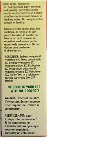 -. Binding : Misc. -. Brand : Dr. Goodpet -. EAN : 0031697101107 -. Feature : Helps heal skin problems, like eczema, that can cause hot spots / Works internally to heal problems that cause hot spots / For temporary relief of pain, itching and scratching / Helps sooth and aid in healing for dogs and cats / Can be used with Dr. Goodpet Flea Relief at 4 hour intervals -. Label : Dr. Goodpet -. Manufacturer : Dr. Goodpet -. Model : SF110 -. MPN : SF110 -. PackageQuantity : 1 -. PartNumber : SF110 -. ProductGroup : Pet Products -. ProductTypeName : PET_SUPPLIES -. Publisher : Dr. Goodpet -. Size : 1 oz -. Studio : Dr. Goodpet -. Title : Dr. Goodpet Scratch Free - All Natural Treatment for Skin Problems, Hot Spots & Irritation -. UPC : 031697101107
