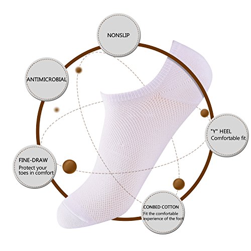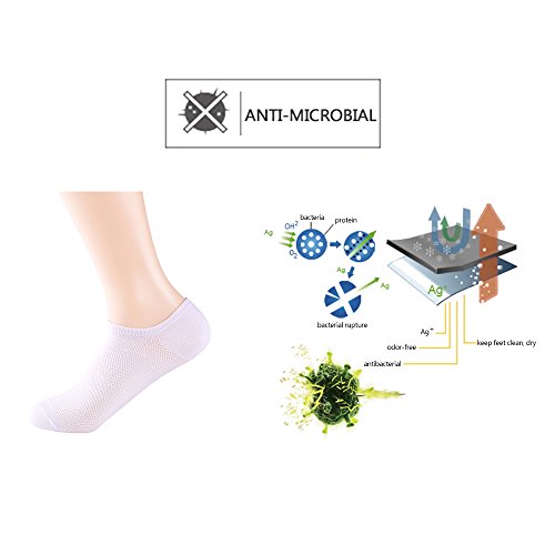 -. Feature : 78% Cotton, 17% Nylon,5% Spandex / Antibacterial silver ions in the yarn to keep feet clean, dry, and odor-free / Moisture management and knit-in mesh for ventilation and breathability,good for casual,business activities / Seamless toe & contoured "Y" heel for the perfect, comfortable fit and prevents socks from slipping down / Embedded arch support reduces foot fatigue