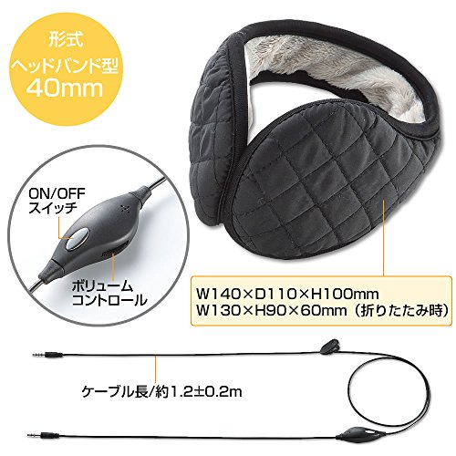 -. Title : イーサプライ ヘッドホン イヤーマフ 耳当て 暖かい 防寒 ジョギング ランニング 有線 ブラック EEX-HPEM01BK