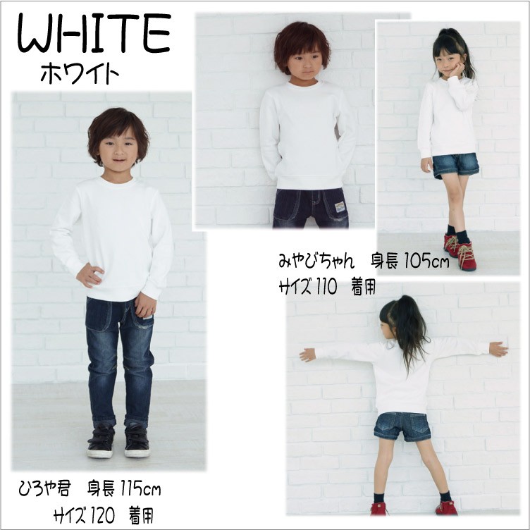 【キッズ シロ 白 無地トレーナー サイズ展開は 100 110 120 130 です。】