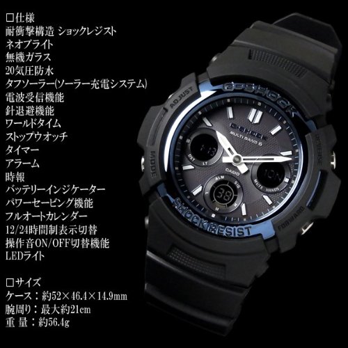 -. Feature : 仕様 耐衝撃構造 ショックレジスト ネオブライト 無機ガラス 20気圧防水 タフソーラー(ソーラー充電システム) 電波受信機能 針退避機能 ワールドタイム ストップウオッチ タイマー アラーム 時報 バッテリーインジケーター パワーセービング機能 フルオートカレンダー 12/24時間制表示切替 操作音ON/OFF切替機能 LEDライト / サイズ ケース:約52×46.4×14.9mm 腕周り:最大約21cm 重量:約56.4g