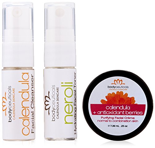 ReleaseDate : 2015-07-02 Studio : The Regatta Group DBA Beauty Depot Publisher : The Regatta Group DBA Beauty Depot Binding : Health and Beauty Product Description Get all of your favorite facial products all in one with the Face Collection Normal to Combo Travel Pack by Bodyceuticals to help keep your skin in balance, toned and refreshed. Includes Calendula Facial Cleanser (0.14 oz.), Antioxidant Berries Calendula Face Creme (0.25 oz.) and Neroli Orange Blossom Aloe Hydrating Toner (0.14 oz.). In convenient sizes for travel, purses and more. Bodyceuticals offers products with the freshest quality and supports organic farms, ingredients and environmental causes. 0