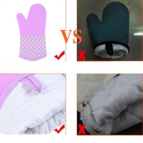 XRS Silicone Oven Mitts of Quilted Cotton Lining Heat Resistant Kitchen Gloves Microwave Pot Holders for Cooking Baking 2Pack (Black)