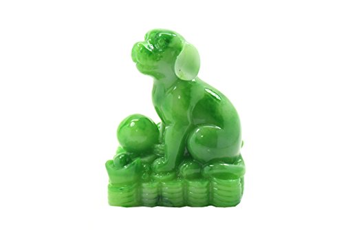 2018 Chinese year of dog Horoscope Chinese Zodiac Handmade Resin Dog siting coin and Ingot Collectible statue Figurine Sculpture (green)