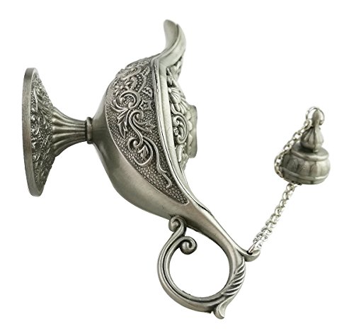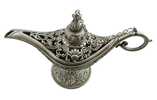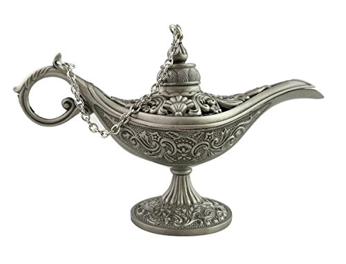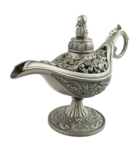 Collectable Rare Antique Silver Aladdin Genie Lamp Alloy Magic Lamp Pot Table Decor & Gift (Large)