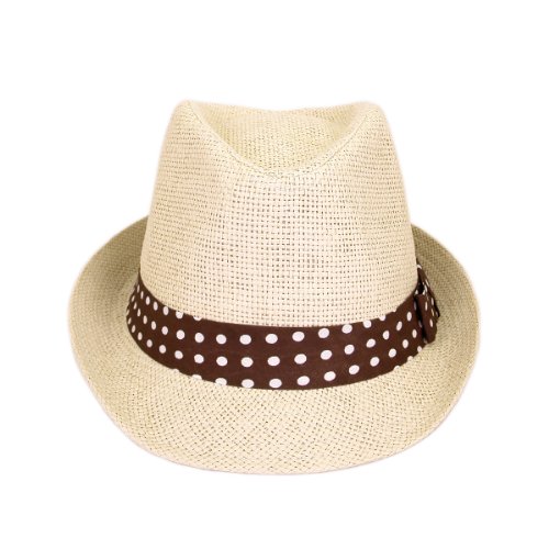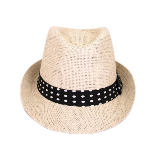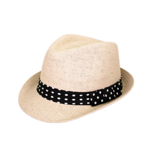 -. Binding : Apparel -. Brand : TrendsBlue -. ClothingSize : One Size -. Department : womens -. Feature : Brand new, made from paper straw / One size fits most / Brand: TrendsBlue / Premium quality, comfortable fit / Different colored polka dot bands available -. ProductGroup : Apparel -. ProductTypeName : HAT -. Size : One Size -. Title : Women's Polka Dot Band Natural Fedora Straw Hat - Different Color Band Avail