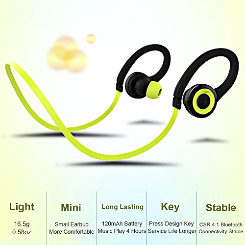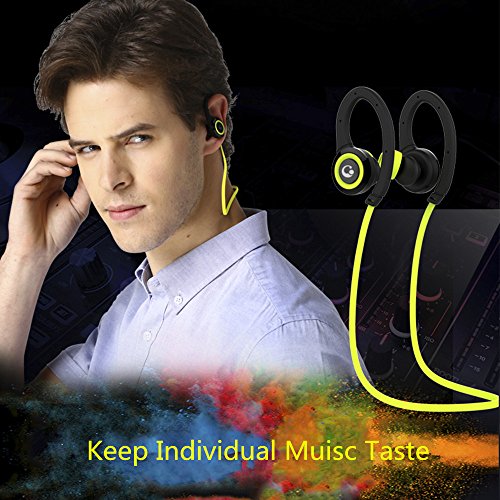 Bluetooth Headphone Sport, Fitness Headset Water-proof Wireless 4.1 Noise Isolation Stereo Headphones, Secure Fit for Sports Built-in Mic Hands Free with Portable Zipper Case