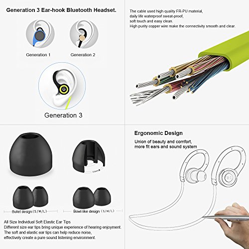 [Comfortable Waring]: Ergonomically designed flexible ear hooks with soft silicone earbuds to ensure your headphones stay comfortably firm in place to guarantee fatigue free ears and tangle free comfort, stable wearing.