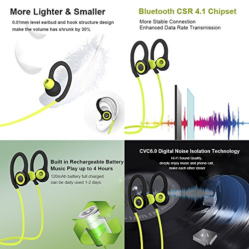 [Hi-Fi Stereo Sound]: New bluetooth 4.1 version, CSR8645 chip with 6G CVC noise cancelling technology offer high quality sound experience, clear phone calls, effective connection range distance up to 10 meters, 393.70 inch.
