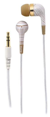 iHOME IB20WM Noise Isolating Fashion Earphones, White and Gold Striped (Discontinued by Manufacturer)