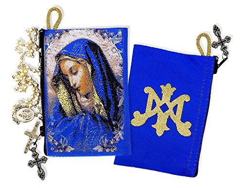 - Blue Gold Catholic Our Lady of Sorrows Religious Gift 2 Sided Rosary Pouch Case Cloth Keepsake Holder - 4 1/2 inch x3 inch