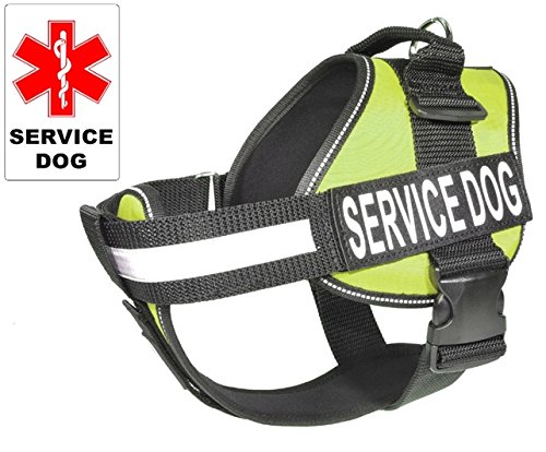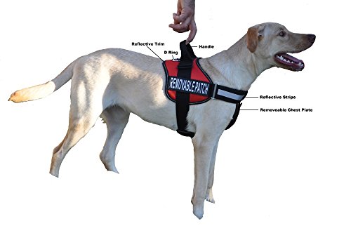 Studio : Dogline Publisher : Dogline Binding : Misc. Product Description Dogline Unimax Reflective Service Dog Vest Harness with Removable Chest Plate and Service Dog Velcro Patches. These harnesses are perfect for service dogs, therapy dogs, medical alert dogs and a lot more. These harnesses are made of durable breathable nylon with neoprene lining. Machine washable and weather resistant materials make this harness low maintenance and very practical in all life situations. These harnesses come with removable chest plate to provide maximum comfort for the dog. Chest plates and trim around the harness are reflective for maximum safety. EZ Grab handle provides total control of the dog in any situation. These harnesses come in 6 different colors and 5 sizes. Please measure your dog's girth behind front legs at the widest point before ordering. 0