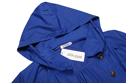 Meaneor Women's Long Sleeve Lightweight Waterproof Outdoor Hooeded Raincoat, Blue, Medium