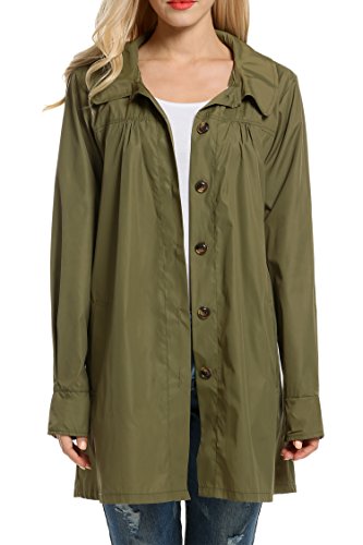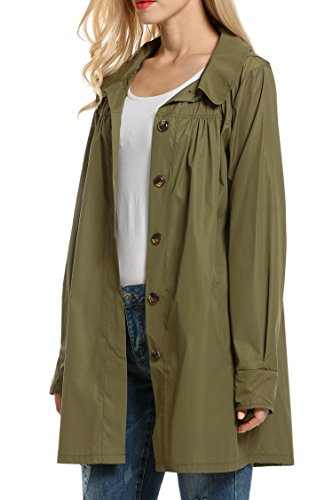 Meaneor Women's Long Sleeve Lightweight Waterproof Outdoor Hooeded Raincoat, Army Green, Medium