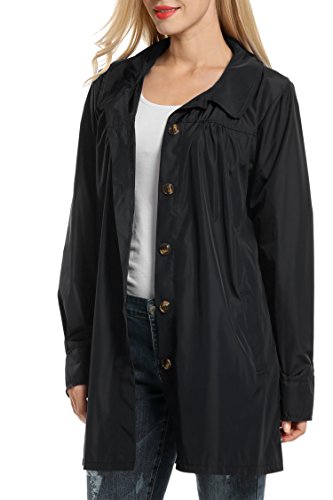 Meaneor Womans Long Sleeve Lightweight Waterproof Outdoor Raincoat W/ Hooded,Black,Large