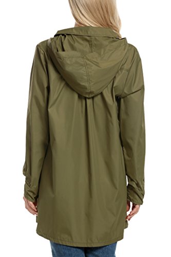 Meaneor Women's Long Sleeve Lightweight Waterproof Outdoor Hooeded Raincoat, Army Green, X-Large