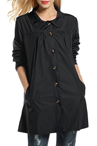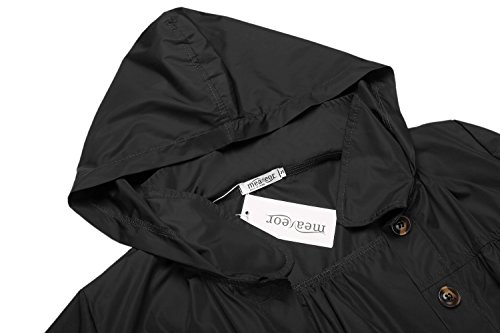 Meaneor Womans Long Sleeve Lightweight Waterproof Outdoor Raincoat W/ Hooded,Black,Medium