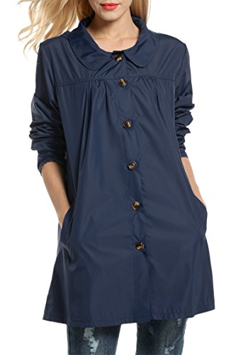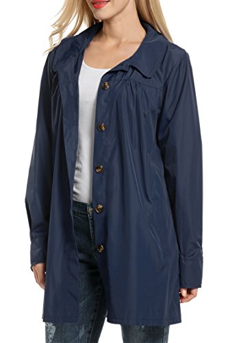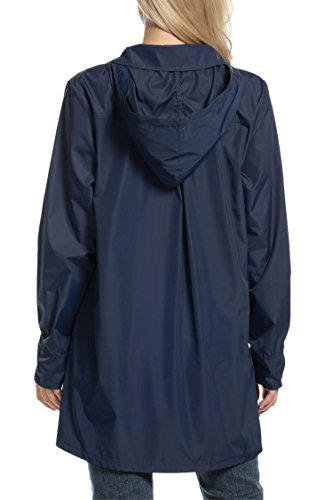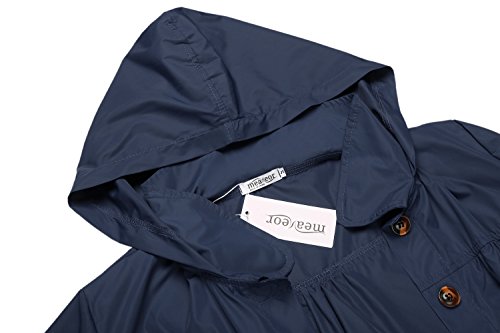 Meaneor Womans Long Sleeve Lightweight Waterproof Outdoor Raincoat W/ Hooded,Navy Blue,Large