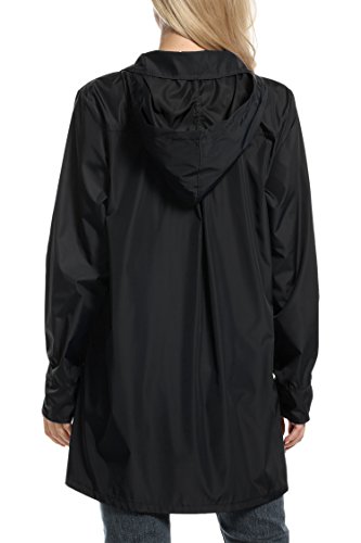 Meaneor Womans Long Sleeve Lightweight Waterproof Outdoor Raincoat W/ Hooded,Black,X-Large