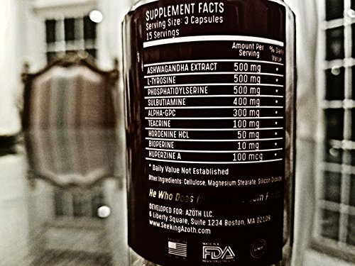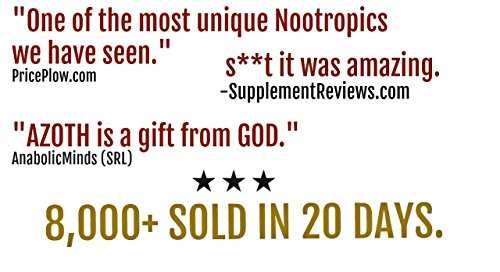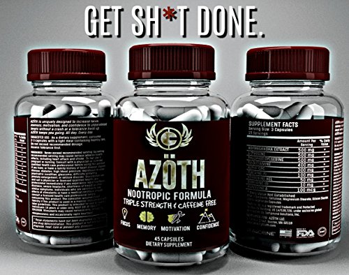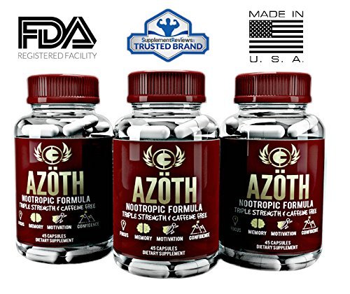 WHAT IS AZOTH Let's be real, if you're looking for peak performance, caffeine and underdosed dosed nootropics aren't going to cut it. You'll crash, feel nothing, or end up having to take more each time and suffer headaches and horrible sleep patterns. That's why we produced AZOTH. AZOTH contains a matrix of SUPER HIGH patented ingredients that address productivity from EVERY conceivable angle - energy, mood, focus, cognition, and speed to extreme levels. AZOTH is completely non-habit forming, is 100% caffeine-free, and will crush any rises in stress at its tracks! So when life keeps you hanging (or crashing) AZOTH WILL KEEP YOU GOING! HOW IS AZOTH DIFFERENT THAN THE COMPETITION Let's cut to the chase - most Nootropics on the market are severely underdosed and are just a blend of caffeine and other cheap Chinese herbs that frankly do nothing. The ingredients in AZOTH are 10-50x higher than found in brands such as Alpha Brain, NeuroPeak, and other "best-sellers" on Amazon. When you buy a bottle of AZOTH your money is going into the ingredients and not into fancy marketing campaigns. When people try AZOTH they often tell us it's unlike anything they've taken before. That's because AZOTH is a REAL nootropic, and not just a caffeine pill. As a matter of fact, there is no caffeine in our product. If you have any doubts, just check our ingredient label and compare it to the ingredient label of those million dollar "nootropic" companies that promise to change your brain with 10 mg of junk. WHERE IS AZOTH MANUFACTURED AZOTH is manufactured from start to finish in a cGMP, FDA compliant facility in The United States. This includes RD, Design, Labeling, Sourcing, Manufacturing and any and ALL labor involved in the production of the product. 0% has been outsourced outside the USA. #MERICA!!! 0