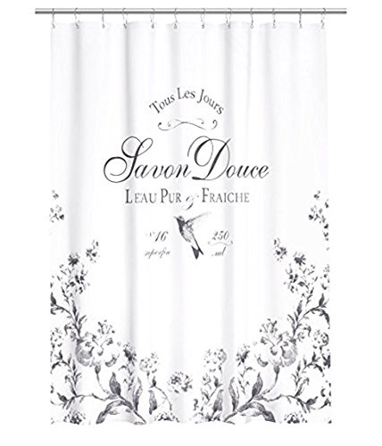 SUN-Shine Custom French Vintage Old Fashion White And Black Water Repellent Fabric Shower Curtain with Hooks Set 72x96IN