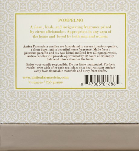 ReleaseDate : 2015-02-01 Studio : Antica Farmacista Publisher : Antica Farmacista Binding : Health and Beauty Product Description The flicker of light. The subtlety of fine fragrance. Pair your favorite home ambiance diffuser with its matching candle for the perfect gift. Antica Farmacista's premium, clean burning, soy/paraffin wax candles with all natural wicks have 60 hours of scented illumination. Candles are beautifully produced in a clear glass vessel with our platinum leaf pattern and packaged in our pedestal presentation box. 0