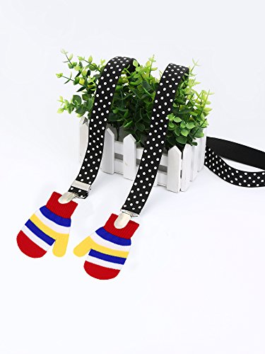 Satinior 2 pieces adjustable mitten clips fully adjustable (23.6 - 47.2 inches) elastic glove clips for kids Various choices: Different colors for you to choose, include black, red, white and so on, can meet your different needs easily, some colors can match with Christmas, but each package only contains a color, please look at pictures carefully before you choose the color. Wide ranges of usage: They can be applied to fix gloves and hats for your children when they run or play games, especially for outdoor activities, can serve as suspenders for pants, also can use them to fix sofa cushions, mattress, sheets and so on, very useful in daily life, with some colors corresponding with Christmas, they can provide as gifts to your kids. 20 Colors: There are black, red, pink, rose red, white, grey, blue, yellow, black with white spots, pink with white spots, red with white spots, white with black spots, rose red with white spots, color 1, color 2, color 3, color 4, color 5, color 6, color 7. Specifications: Length of mitten clips: 23.6 to 47.2 inches Width of mitten clips: 0.8 inch Material: polyester double woven Quantity: 2 pieces Package includes: 2 Pieces of mitten clips in same color Notes: Due to manual measurement, the size may have a little errors. The colors may look a little different due to different screens. Please check the color and quantity carefully before you purchase. 0