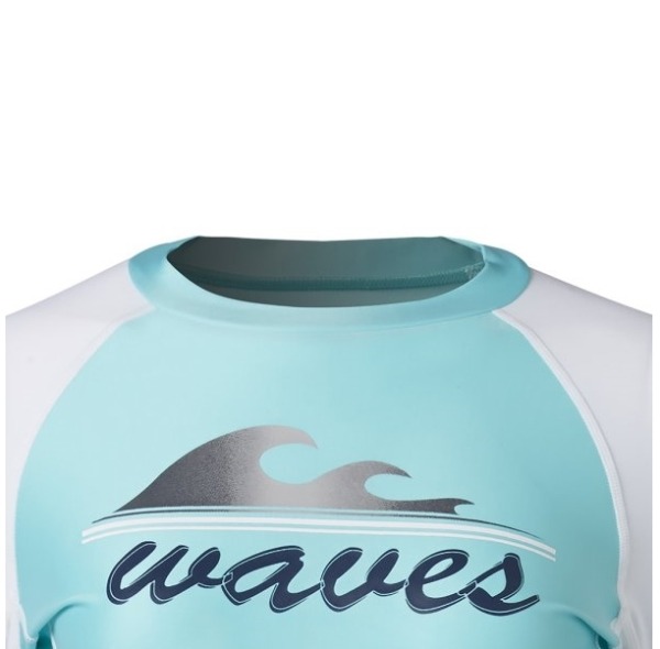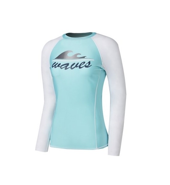 - Hot Summer Water Sports 용 긴팔 Rash Guard 상의- Water Sports 활동 시 저체온증 및 상처 방지 등의 역할 기능과 UV 차단 기능이 있는 쾌적하고 안전한 기능성 의류- 파스텔 톤의 컬러 조합으로 여성스러운 이미지 강조