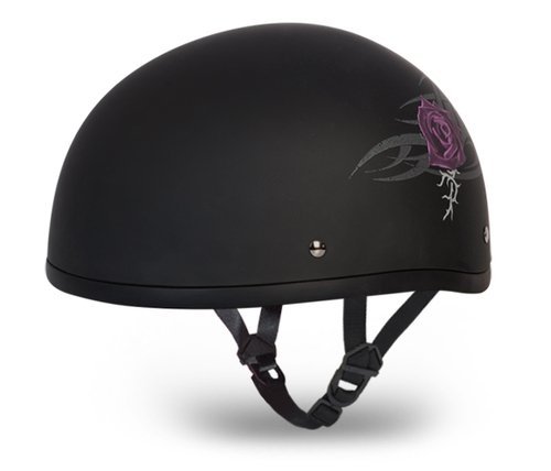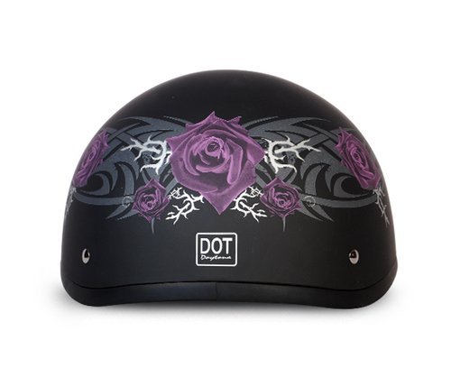 -. Title : D.O.T. Daytona Skull Cap Motorcycle Helmet- W/ Purple Rose - Medium